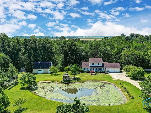Stunning property just under 6 1/2 acres, situated on a river access, partially wooded lot. Home features a spacious FR that leads out to a large deck overlooking the expansive backyard, perfect for outdoor entertaining. Kitchen offers granite countertops & eat-in area that seamlessly flows into formal DR & FR. 1st floor laundry, & primary suite, complete w/ walk-in closet & bathroom. Walkout BSMT is a versatile space incl. an office, workshop & add’l garage for storing toys or lawn equip. Greenhouse & heated barn w/ walk-up attic, endless possibilities. Enjoy mornings in the enclosed gazebo.