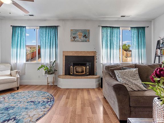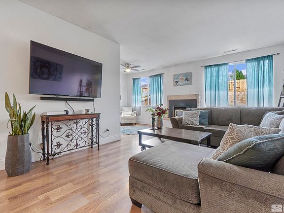 This 4 bedroom, 2 bathroom Single-story house is situated on a peaceful cul-de-sac. The interior features a bright and spacious floor plan with high ceilings throughout. The kitchen offers stainless steel appliances, plenty of cabinets, and counter space with a breakfast bar. The large open living room includes a pellet stove, perfect for your cozy evenings as well as two ceiling speakers ready to stream your favorite tunes from your phone. Outside, the large 0.31-acre lot features a fenced dog run,, a storage shed, and the potential for RV parking. With ample space available, you can also cultivate a vegetable garden and enjoy various outdoor activities. The house is close to local hiking trails and two public parks. Please note some pictures have been virtually staged.