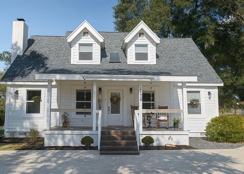 If privacy in a country setting on a quiet, friendly street is what you're dreaming of—welcome home to this beautifully updated 4-bedroom, 2.5-bath modern farmhouse. This property has no HOA. Located in Mount Dora but within county limits, this property offers the charm of rural living with no city taxes, water, or sewer, while still placing you just minutes from shopping, dining, the historic downtown district, and convenient routes to Orlando, the beaches, and the theme parks. Set on a spacious ½-acre lot, this home provides ample room for parking, entertaining, and family gatherings. Inside, you'll find a thoughtfully designed floor plan featuring large main-floor living spaces, luxury vinyl plank flooring, crown molding, and designer touches throughout. The main-floor Master Suite and a flexible 4th bedroom—currently used as an office—make everyday living easy for those wishing to avoid stairs. The back porch is incredibly spacious and allows plenty of peace and tranquility. At the heart of the home is the beautiful kitchen with quartz counters, stainless steel appliances, and plenty of storage—perfect for cooking, hosting, and connecting with loved ones. You'll also love the oversized detached garage! This space is ideal for toys, equipment, hobbies, or a workshop. Step outside to enjoy the completely fenced yard, lush landscaping, mature trees, and a cozy fire pit for cooler evenings. A new roof installed just 3 years ago and a newer well pump will add to your peace of mind. This home blends warmth, character, and modern updates flawlessly—truly move-in ready and built to last.