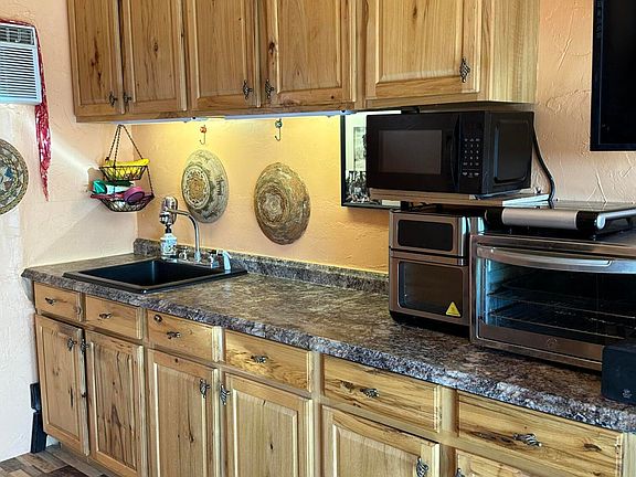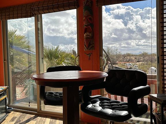 The Exceptional North Ranch owned Lot is So Different! Against the STATE LAND and Patio is right up to State Land Fence. AMAZING VIEWS TO NORTH AND SOUTH. Enjoy Those Views while Lounging on the Patio or Relaxing in the Heated Spa. Very Private! Shed opens to the Back too. Unusual! Laundry, Storage etc for your pleasure. Really Large Inviting Paver Patio Extends the Back Yard. Includes the Big Spa Umbrella for Shade. The Cottage has 3/4 Bath with Shower, Studio Kitchen and Great Room which Opens to Wide Patio Door Views of Our Beautiful Desert! An Attached Class A Joined to the Cottage for More Office, Kitchen (big refrigerator) AND Another Bath. Queen Bedroom and Ample Closet Space. Must See ! Work Bench Space under Cover. Borders Lg Common Area EAST Side