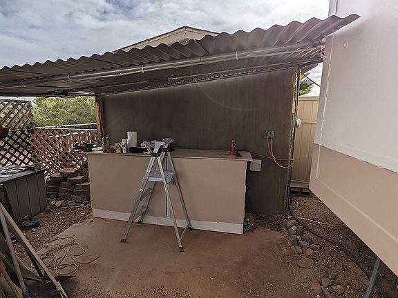 Best small lot in the park, Corner lot, unobstructed desert views out the back and to the East called South Beach, private back patio, nice shed with newer Samsung Washer and dryer, hot tub, mature palm trees, entire back yard pavers, will throw in shade umbrella, covered work bench, 2 kitchens, 2 baths, mini split AC units, part of the Escapees RV Park of North Ranch, 10 miles North of Wickenburg, and only 5 miles to Congress. Unique set up must see. It's got a class A motorhome attached to a stick built Casita that has a South Caribbean tiki motif. The motorhome doubles the square footage. Since getting a loan on this property may pose challenges, we're looking for a cash buyer. Sold as-is. Ultimate Tiny Home. Super reasonable cost of living. Great community oriented RV park. NR has a clubhouse, community center, indoor pickleball court, and weekly activities. Motivated seller. Call Jay for an appointment. 541-480-5310