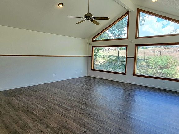 This adorable cottage type farm home has been recently remodeled. The home has 2 bedrooms and 2 bathrooms. My favorite room in the home is a vaulted ceiling sun room with many windows that opens onto a trex deck. The bright and cheerful room is beautiful. There is a separate dining room and a nice deck facing south on the front of the house. The home features brand new finished hardwood floors. It would be nice if you would take your shoes off at the door, but not a necessity. You will quickly see when you view the property how lush and green the 3 acres are. There is a seasonal ditch that runs the length of the property. The owner says she has never seen the ditch without water, but that is to be verified by the Buyer. The property is fenced and cross fenced and the 3 acres is used very wisely for a small parcel. The new paint, remodel, and beautiful floors make this cozy home a must see.