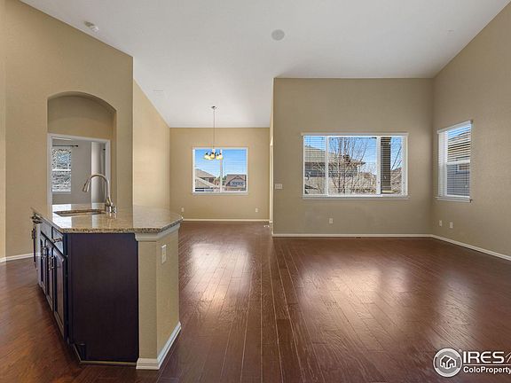 Beautiful move-in ready home in desirable Bucking Horse neighborhood with access to neighborhood pool. This ranch-style home features a chef's kitchen with granite countertops, in-wall oven/microwave, gas range, pot filler, kitchen island, stainless appliances, and butler pantry. The soaring vaulted ceilings, hardwood floors, gas fireplace, built-in surround sound, 5-piece primary bath, and walk-in closet make for luxurious living. This home sits atop a full unfinished garden-level basement with tons of natural light. Backyard is fully fenced and the covered patio in back with composite decking is a welcome haven on warm summer days. Neighborhood is moments from Jessup Farm, grocery store and shopping center, and easy access to both Old Town Fort Collins and I-25.