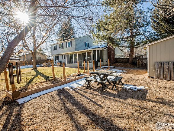 Tastefully updated 4 bed home in one of Ft. Collins' most sought after neighborhoods. This desirable floorplan offers spacious rooms and comfortable retreats. Four beds up with 2 fully remodeled baths. Two large living areas and a large rec room in the basement. Great screened-in porch for summer afternoons. Beautiful lot with mature landscaping and towering pines. A stone's throw from community pool, tennis, clubhouse and walking distance to neighborhood Edora Park and neighborhood schools and restaurants. Home offers hickory floors, newer AC unit (2018), new roof (October 2020) and a fully sprinklered lot with drip systems for garden boxes, flower beds and fruit trees.