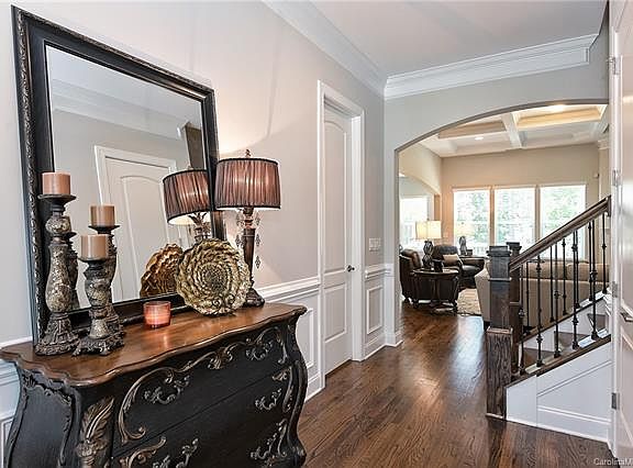 Casual Elegance Abounds in this "Better than New" Bonterra Built Home with tons of character. The Covered Front porch is so welcoming. Fabulous Open Floor plan with Spacious Rooms. Large Great Room has on site gleaming real hardwood flooring that extends into the kitchen and formal areas. Designer details abound such as Coffered ceiling in GR and extensive moldings. The cook will never be alone in the Gourmet "Cooks Kitchen" w/ generous cabinetry, 5 burner gas cook top and stainless appliances. Walk in pantry. Laundry room w/sink. Master Retreat on Main with Lovely Master Spa Like Bath. Upstairs features spacious double door entry Rec Room that can be a 5th bedroom, 3 additional bedrooms with great closets and 2 full baths. Tons of Storage. Large Deck with lovely back yard to sit back and enjoy watching the wildlife. 3 Car Garage for all your toys! Close to 485 and the new 74 By-Pass. Low Union County Taxes. You will love the amenities The Enclaves at Crismark enjoy: Clubhouse pool/tennis/playground and walking trails. Public Golf Courses nearby.