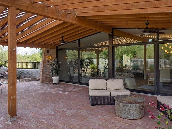 Wonderful originally built ''La Quinta'' burnt adobe ranch on the end of a cul de sac! Move in ready to this touch of modern meets classic renovated home with a new addition just added in 2014. 3 beds, with each having their own bath and walk in closets. Italian porcelain distressed wood look floors thru most of the home. Decor appliances, and Liebherr (German fridge) granite and plum slate countertops in kitchen, quartz countertops in all baths, limestone Victoria Albert free standing master tub, 2 person master shower, 20x22 approx. master bedroom, lg. master walk-in closet, pitched ceilings, over-sized garage door can fit SUV's, classic wood burning fire place in living area, dual HVAC systems, new Milgaurd windows, all new int. doors. This home borders a wash for a sense of privacy!