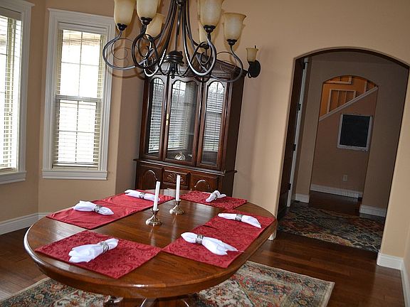 Custom home in an established neighborhood, 2 blocks from Ozark East Elementary school on a cul-de-sac off of a dead end street in Autumn Knolls Subdivision. This 4 bedroom, 3 full bath home has it all. Split bedroom layout, 2600+ square feet with an extra large 3 car garage, in ground sprinkler system, Hunter Douglas wood blinds, granite counter tops, KraftMaid cabinetry, barrel entry ceiling, 10’ ceilings, crown moulding, 2 gas fireplaces, jetted tub, large master suite, hardwood flooring through out, new carpet in bedrooms, large upstairs bonus room is a non-conforming 4th bedroom with large closet and full bathroom, plenty of closet space, formal dining room and covered back patio, large backyard overlooking 100+acres of farm ground. Call or Text Brent 861-9435 to schedule a viewing.