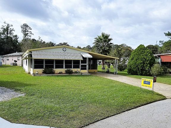 Peace and quiet in this 2 bedroom, 2 bath double wide tucked away on a quiet, side street. This home features a nice sunroom on the front of home with vinyl windows for multi-season enjoyment. There is also a screen porch at the carport side of home. Laundry located in shed. So many improvements have already been done here! New plumbing! New electric panel! All plywood subfloors throughout the home. Kitchen updated and bathrooms have been remodeled. If you are looking for a wonderful home that is in great condition and move in ready stop here! This home is vacant and the seller is motivated. Ready for fast close. Located in the age qualified community of Clover Leaf Farms. Located north of the Tampa/Clearwater/St. Petersburg metro area, Clover Leaf Farms is a 55+ retirement mobile home community that is big on amenities. Offering two spacious clubhouses, billiards, shuffleboard courts, pickle ball and catch/release fishing you won't be bored here. There is also a dry sauna, indoor heated swimming pool, and a whirlpool-spa-hot tub as well as a large heated outdoor pool and new fitness center being built. This Brooksville, FL mobile home neighborhood will never leave you wanting. Clover Leaf Farms also provides its residents with a pet friendly environment that also includes RV storage, a scenic picnic area, and on-site management. With so much to offer, you can't go wrong when you choose to live at Clover Leaf Farms.