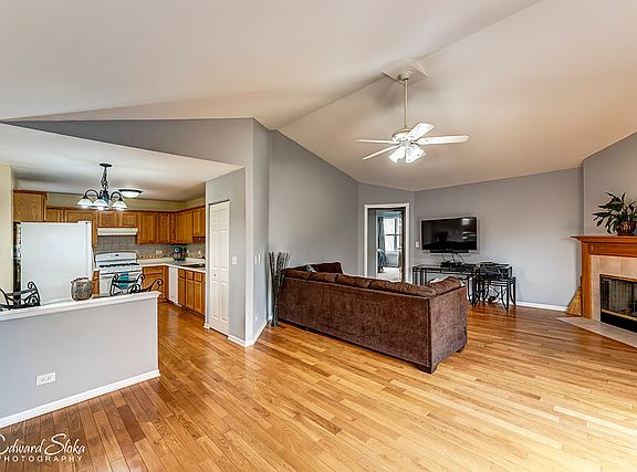 Now Available! Great home with an open floor plan, hardwood floors, vaulted ceilings, plantation shutters and a fireplace! Updated kitchen with a tile backsplash, eat in area & pantry- all appliances are included. Master Bedroom has a walk in closet. Both bathrooms are large in size and upgraded with ceramic tile. Washer and dryer are located on the main floor. Water heater, carpet on the stairway, garage door and opener were all recently replaced. Great location! East of the Fox River, close to main roadways and convenient for Metra commuters. Low association fee of $158 a month. Taxes do not reflect a homeowners exemption. Motivated Sellers!