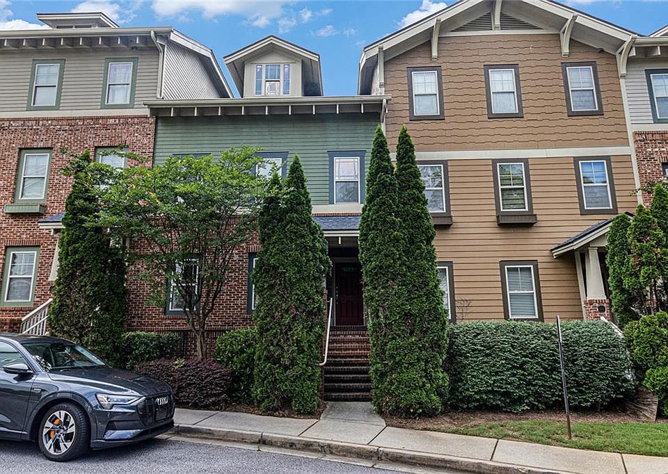 Gated community nestled in the vibrant neighborhood of East Atlanta. This well-designed and thoughtfully laid out home has all the charm of a vintage craftsman with all of the creature comforts for modern living. Walk through the front door of this end cap home to find the open concept, over-scaled living room surrounded by two walls of windows, a fireplace, and built-in shelves filling the space in warm light and character. Move through to the dining area with space to entertain friends. The kitchen is well-appointed with plenty of counter space and storage. It features a built-in desk that is a great space to work, or it can do double duty as a bar--it overlooks a double French door leading to the deck. Once beyond the French doors, you will find a large deck with a wooded lot beyond for privacy. The abundant primary bedroom is bright and airy with an en suite bath and a generous walk-in closet. Downstairs is the second bedroom and full bath, creating added privacy for guests or a roommate. Perhaps you work from home-- make it feel like you have left your house and gone to the office just by going down a flight of stairs(we won't tell anyone that you are still in your house clothes ;) All this and your own garage and entrance--the design elements of a single family home without all the headache of maintenance. The HVAC was replaced in May of 2024, and a new roof was installed in 2023, a new fridge, fresh new carpet, and real hardwoods throughout. Additional parking is available in the driveway, and loads of guest parking spaces. Low HOA fees, pool, gated in a prime location close to East Atlanta Village, Ormewood Park, Grant Park, and Summerhill. Location, convenience, comfort, and a pool are all here, and at this price, it is irresistible!
