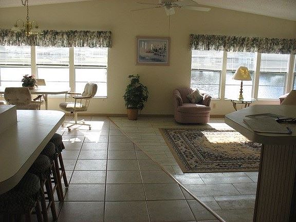 THIS BRIGHT AND SPACIOUS home with an amazing water view is a 1991 Palm Harbor, 1759 s.f., 3 bedroom 2 bath. This home features a newer AC, roof, dishwasher and oven. The master suite includes a garden tub and shower and large closet. The large open great room has a wet bar and has an entire wall of windows overlooking the lake! Home needs a few cosmetic things finished, but will be a show-stopper when it?s complete.