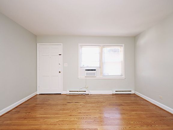 This 500 sqft ground-level apartment offers hardwood floors, a living room with space for a small kitchen table, a galley-style kitchen with a refrigerator and an electric oven, a nicely sized bedroom with closet space, and a full bath with a combo tub/shower. Two window ac units are included.