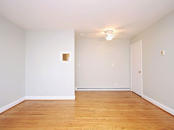 This ground-level apartment offers refinished hardwood floors, a living room with space for a small kitchen table, a galley-style kitchen with a refrigerator and an electric oven, a nicely sized bedroom with closet space, and a full bath with a combo tub/shower. Two window ac units are included.