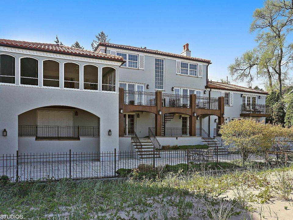 This showcase estate rests majestically on 120 feet of Lake Michigan shoreline. 5+ bedrooms, main floor master suite, kitchen features William Ohs custom cabinets, granite counters & sink, 6 burner Thermador range w/ 2 ovens, Miele dishwasher, Sub Zero fridge. Lower level beach kitchen also has William Ohs cabinets, fridge, ice maker, full sink w/ disposal, dishwasher, and granite counters. 4.5 bathrooms all with limestone or mosiac tile finishes. Audio surround throughout, spacious main floor screened porch w/ expansive Lake Michigan views and custom roll canvas shades. Stone patios along the entire beach side of home on both levels. Permanent gas grill. Beach level family room features custom cabinets for TV & audio, 2 elegant bathrooms for beach goers, and office/TV room which could be 2nd master suite. Beach level boathouse with access to beach (larger than a 2 car garage). Recent successful septic inspection report available upon request. Come see this masterpiece on the sand