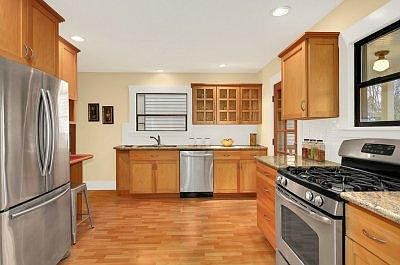 Wonderfully warm and inviting home tucked away in a quiet neighborhood yet only minutes to Greenlake and I-5. Meticulously updated throughout. New kitchen with SS appliances and Quartz countertops. New tile in bath. Polished finishwork. Formal dining room with french doors that open to tiered wood deck and nicely landscaped, private back yard. Full-height basement with tons of potential! New electrical and plumbing throughout. High efficiency forced air furnace. This home really shines!