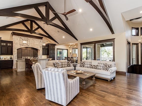 Masterpiece Executive Estate Residence Now for Sale! Rare Opportunity! Step into luxury and the ultimate RESORT LIVING experience! This hi-tech estate spans over 6,100 sq ft of finished area with an additional 2,000 sq ft of covered indoor/outdoor living space! Custom built by Craig Sharp Homes, located on a .65-acre treed, cul de sac lot in the highly regarded & private gated community of The Reserve at Reeds Cove. This home offers everything imaginable! Stone exterior, inlaid stone/concrete driveway, vast landscaping & mega curb appeal. Impressive exterior stone and brick stairs welcome you. Stately iron doors & the custom dome vaulted entry says WOW! The rounded turret with custom woodwork and transom windows, massive custom arched beams & oversized fireplace with floor to ceiling stone hearth are favorites! Kitchen features a 12' stone hood above the 6-burner Thermador commercial gas cook station, Gaskill custom cabinetry, gigantic granite island & countertops, upgraded lighting and fixtures. Enjoy the expansive resort-like pool and landscaping views. Three elevated travertine balconies with iron. The stunning owner's suite features large bedroom w/ private outdoor raised covered patio, stone fireplace, oversized master closet w/ 12' ceilings, huge walk-in glass shower & TV built into the vanity mirrors. Arched pocket doors w built-in full-length mirrors divide the bath from the bedroom. All bedrooms have private bathrooms and walk-in closets. Two laundry areas (1 up, 1 down). 6-car garage is heated, insulated w/ epoxy flooring, built-in cabinets and upper attic storage. Kitchen corridor with brick barrel ceiling, ceiling accent lighting, drop zone, dog center & stylish guest half bath! Moving into the lower level you'll be wowed by the vast space to play, relax and entertain! An entire wall of windows and doors promotes flow between family/recreation area and the elaborate backyard. Family room features a sunken theater room with raised stage theater seating, individually wired reclining theater chairs (negotiable), stone arched accents, a raised upper bar with bar stool seating area, an oversized island and additional rear bar with beautiful stone arch & game table area. Adjacent to the theater room and wet bar is the newly remodeled "Gentleman's Parlor or Ladies Lounge". Perfect entertainment space! This area is very special, solid wood wainscot and trim to match, extraordinary lighting and a cozy warm feel. Storage room doubles as storm shelter. The lower level includes 1/2 bath w/ pool access, an exercise room & two bedrooms with en-suite bathrooms & walk in closets. The backyard is an oasis, completely private with irrigation well, sprinkler, wood/iron fencing, over 10 semi-truck loads of stone crafted retaining walls & arched stone back yard double gate. Three outdoor kitchens!!! The main kitchen features Twin Eagles components and a natural gas grill with vented hood. There are two outdoor fireplaces, one in the outdoor kitchen/hearth room and the second off private owners' patio. Other exterior amenities include the upper-level outdoor dining room, five outdoor ceiling fans, six TV's outdoors under covered roof lines (negotiable) and lower-level stone fire pit table permanently attached. Custom 50-thousand-gallon salt water Gunite pool is 9' deep with swim-in grotto and spill-over spa, swim-up bar with four tile-topped bar stools, Pebbletech zero-entry with Baja shelf. Enjoy a chaise lounge in the water. The Limestone Water fall, rain curtain falls into pool and spa, LED bubblers & integrated lion heads fountains. Pool has ten lights w/ phone app to control sound, lighting & pool features. Four variable-speed high efficiency pumps & gas heater keep operating costs low. Putting green & nice sized grassy yard. The audio system has 8 zones of selectable audio, Sonos & multiple options in video to the 19 TVs mounted in & out of the house. (negotiable). Live your best life here at this Amazing Retreat!