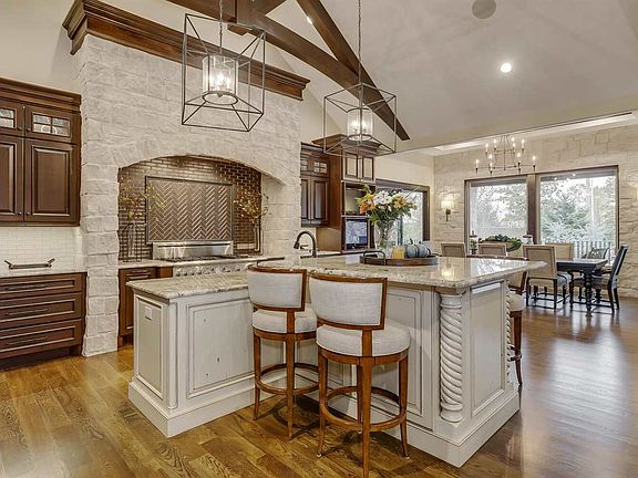 RESORT LIVING in this stunning 6,100 square foot custom estate home with 2,000 sq ft of covered indoor/outdoor living space! Nestled on 2/3 acre lot in private gated community of The Reserve at Reeds Cove, this home is an entertainer's dream. Built in 2017 and designed with today's trends in mind, the home spares no feature - the custom dome vaulted entry sets the tone upon entry and carries through to the rounded turret with custom woodwork, the custom arched beams carry into the kitchen featuring a 12' stone hood surrounding the 6-burner Thermador commercial gas cook station encompassed by Gaskill custom cabinetry. Enjoy the vista views of the pool and landscaping from the floating oversized dining room, or from one of three elevated travertine balconies. The stunning master bedroom suite features a large master bedroom with a private outdoor raised covered patio with fireplace, oversized master closet with 12' ceilings, huge walk-in glass shower, and custom tv built in to the vanity mirrors, invisible when not in use. The office on the main level features custom built ins and wood floors, with an attached shared bath and closet, doubling as an additional main level bedroom. The 6-car heated and insulated garage features epoxy flooring, built-in cabinets and attic access with additional storage and is accessed through the kitchen corridor with brick barrel ceiling, drop zone, dog center and storage closet as well as the guest half bath. Downstairs, the expansive wall of windows and glass doors brings the outdoors inside as well as allowing a seamless transition between both amazing spaces. The family room with framed projector screen is sunken with stone arched accents and a raised upper bar area which connects the family room to the bar area. The bar features an oversized island with rear bar and beautiful stone arch. The winter man cave in the basement is an amazing space with endless possibilities of flex-usage. The storage room at the end has a locking steel door, and the pool bathroom allows for wet feet access. An exercise room, two bedrooms and two bathrooms and additional laundry complete the basement. The backyard is completely private with Irrigation well, fenced with partial stained good neighbor cedar and iron - over 10 semi-truck loads of stone were crafted into the retaining walls, and an arched stone entry into back yard with lockable double gate. There are three outdoor kitchens located on the premises, with the main kitchen featuring Twin Eagles components, a natural gas grill with vented hood. There are two outdoor fireplaces, one in the outdoor kitchen/hearth room and the second off private master patio. Other exterior amenities include the upper level outdoor dining room, five outdoor ceiling fans, six TV's outdoors under covered roof lines, the lower level stone fire pit table remains with the sale of the home. The custom Gunite pool is a 50 thousand gallon salt water, 9' deep with swim in grotto and spill-over spa, swim-up bar with four tile-topped bar stools, Pebbletech zero-entry with Baja shelf and chaise lounges in the water. The Limestone Water fall, rain curtain falls into pool and spa, LED bubblers and integrated lions heads creating calming tones or raging rapids. At night, the pool has ten lights to set any mood desired, all operating off your phone, The pool equipment is housed in the oversized concrete heated storage room. Four variable-speed high efficiency pumps and gas heater keep operating costs low. The audio system anchored in the mechanical room has 8 zones of selectable audio, and multiple options in video to the 22 TVs mounted in and out of the house, never miss a game or your selected event. All Sonos and in wall/ceiling speakers remain with the home, the outdoor TVs remain, the lower bar TV and upper TV in built in fireplace all remain. Protected by security system, the private video surveillance of property also remains including the TVs housed in the kitchen built-ins. 2021-01-06