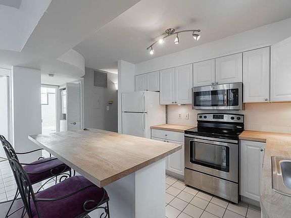Kitchen features modern stainless-steel appliances, excellent cabinet space, and an island that doubles as a breakfast bar for optimum efficiency.