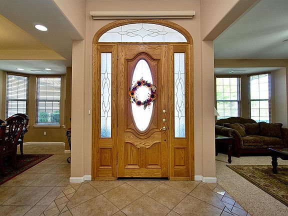 WELCOME HOME! Enter beautiful Custom Glass Door to find separate Living, Dining & Family rooms. Open floorplan, w/all neutral colors, tile floors, soaring 12ft ceilings, beautiful crown molding, recessed lighting, ceiling fans throughout & huge windows for lots of natural light & a great view of the pool! Kitchen is spacious w/granite galore, a breakfast bar, a walk-in pantry, tons of cabinets for plenty of storage & a nook for casual dining. The Master Bedroom is isolated & has a huge Master bath w/jacuzzi tub & a great walk-in closet. On the opposite side of the house, you'll find 3 more bedrooms & a recently upgraded tile/glass bath, perfect privacy all around. The garage is finished & impressive (over 1,100 sq ft), fitting 3 cars comfortably (possibly 4 cars tandem), walls are surrounded by 8' tall storage cabinets, & it even has a 1/2 bath, perfect while working outdoors or enjoying the pool.Outdoors you'll find an exterior fence surrounding entire property w/3 access gates, 2 at front circle drive and 1 on side of property, convenient to access all areas of the property. There's also an interior fence (approx 1/4 acre) all landscaped w/front & back auto sprinklers & a beautiful pool w/sheer descent.Remaining acreage is all flat usable land, perfect to let your imagination run wild! Home is one owner, has a tile roof, 2 a/c units and Solar!! Built in 2004 makes this one a RARE FIND!!**Bed & bath count different than tax, BTV.