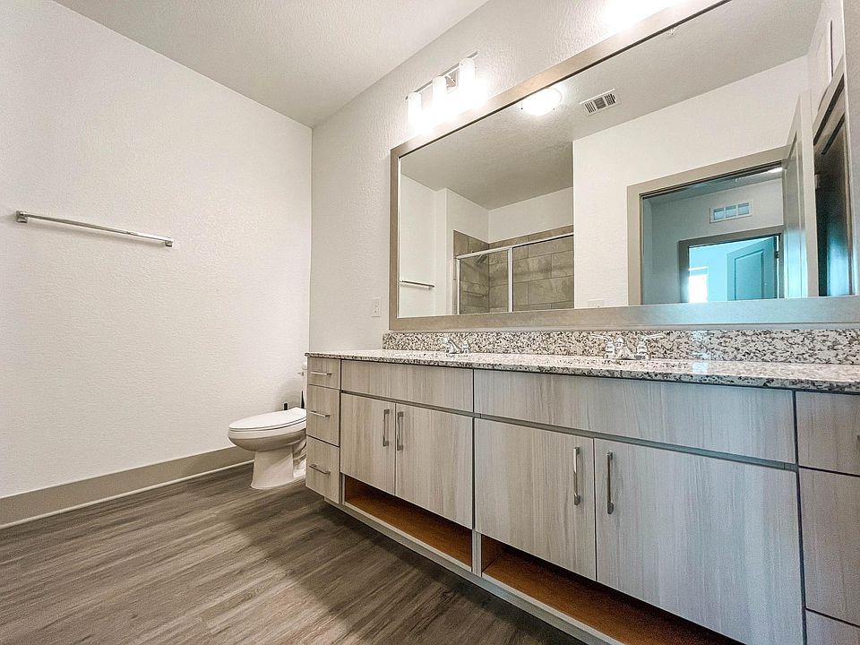 Come live your best life in this stylish room inside a LUXURY apartment community. The community has a TON of amenities for you to enjoy including a resort-style pool, fitness center, grills, free coffee machines, pool table, ping-pong tables, and much more. This is a bedroom inside a 3 bedroom 2 bathroom apartment. The bathroom features a double vanity, so you will have your own sink. All common areas are available for use and the kitchen is fully stocked! *Monthly charge includes: professional cleaning of common areas monthly, utilities, and WiFi* Message for more information. Thank you!