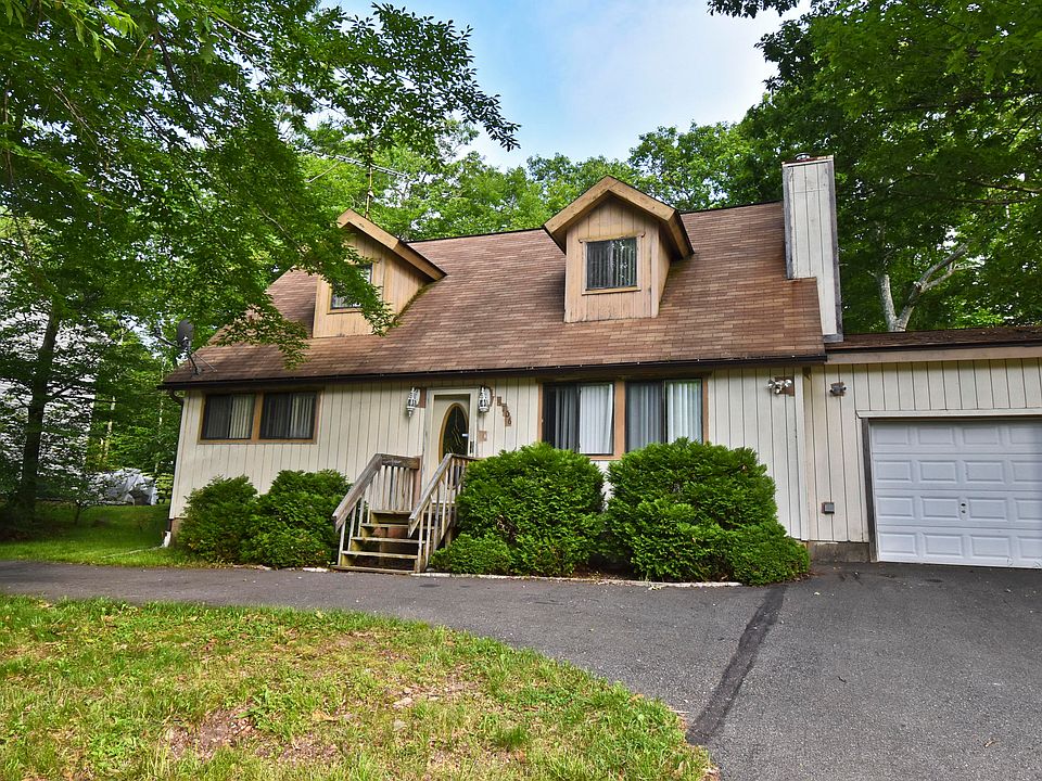 BEAUTIFUL WELL MAINTAINED Cape Cod in the HEART of the Poconos situated on a corner lot in a PEACEFUL community w/ tons of amenities & close to all major Pocono attractions. SPACIOUS Living Room w/ cozy BRICK FIREPLACE perfect for those chilly mountain nights & a Dining Room w/ sliders to the back deck for extended outdoor living space. Ample storage & prep space in the Kitchen w/ convenient access to the garage. The 1st floor has 2 nice size bedrooms & a full bath. The 2nd floor features a HUGE MASTER WING w/a ton of design potential! The right side is your Master Bedroom w/ WALK-IN CLOSET & jack & jill bath. On the left side you'll find an open area for you to design to suite your lifestyle, such as a private hangout space, office, nursery or a potential 4th bedroom! CALL TODAY!