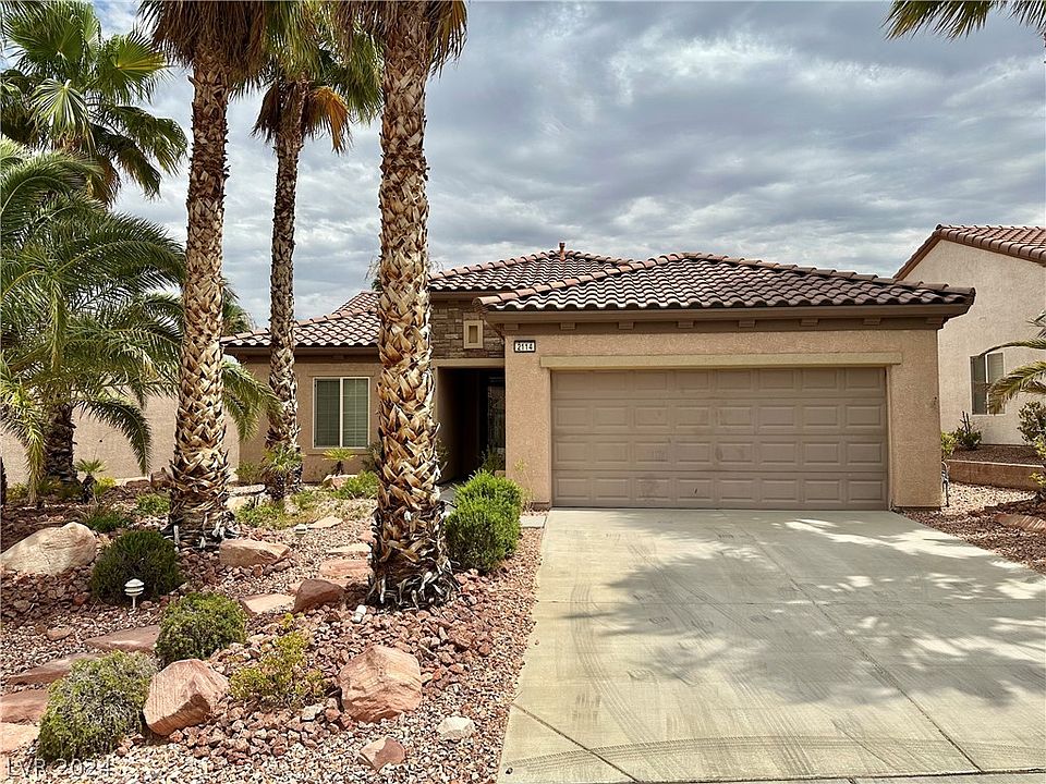 Stop your search, and welcome this new single story Henderson house to market!  Located in the desirable Sun City Anthem 55+ community, your new home features two bedrooms/two bathrooms, a den, a two car garage, on an elevated lot!  Pull up to curb appeal with mature landscaping, and enter this Carolina model to an open design!  The living area flows into the dining room and stunning kitchen!  Complete with eat-in bar countertops, pantry, plenty of cabinet space, and all major appliances included!  Bedrooms separated for privacy!  The primary bedroom/bathroom is spacious, with a walk-in shower, double sinks, and huge closet!  Your private lot is a blank canvas for your imagination, with long covered patio, and strip views!  W/D included and ceiling fans throughout.  HOA amenities seem endless, and include multiple pools, golf, tennis courts, security, and a social calendar!  Conveniently located to all highway, shopping, and entertainment needs!  Come on by while this one lasts!