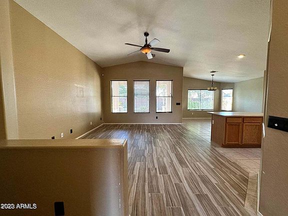Captivating cul-de-sac lot! Gorgeous 3 bedroom, 2 bath 1,536 sqft. home. Finished backyard with brick patio. 2-car garage and extra parking space. Open layout interior, split floor plan with ceramic tile flooring throughout. Sky-high vaulted ceilings. Eat-in kitchen, pantry, island/breakfast bar, and overhead lighting. Cozy family room, perfect for relaxation or entertainment. Luxurious Master bedroom boasts full bath possessing sink/vanity, separate tub and shower. Ceiling fans throughout. Near to Shopping, Interstate I-10, Route 101, AZ Cardinals Stadium, and more. Buyer must verify all facts and figures listed below.