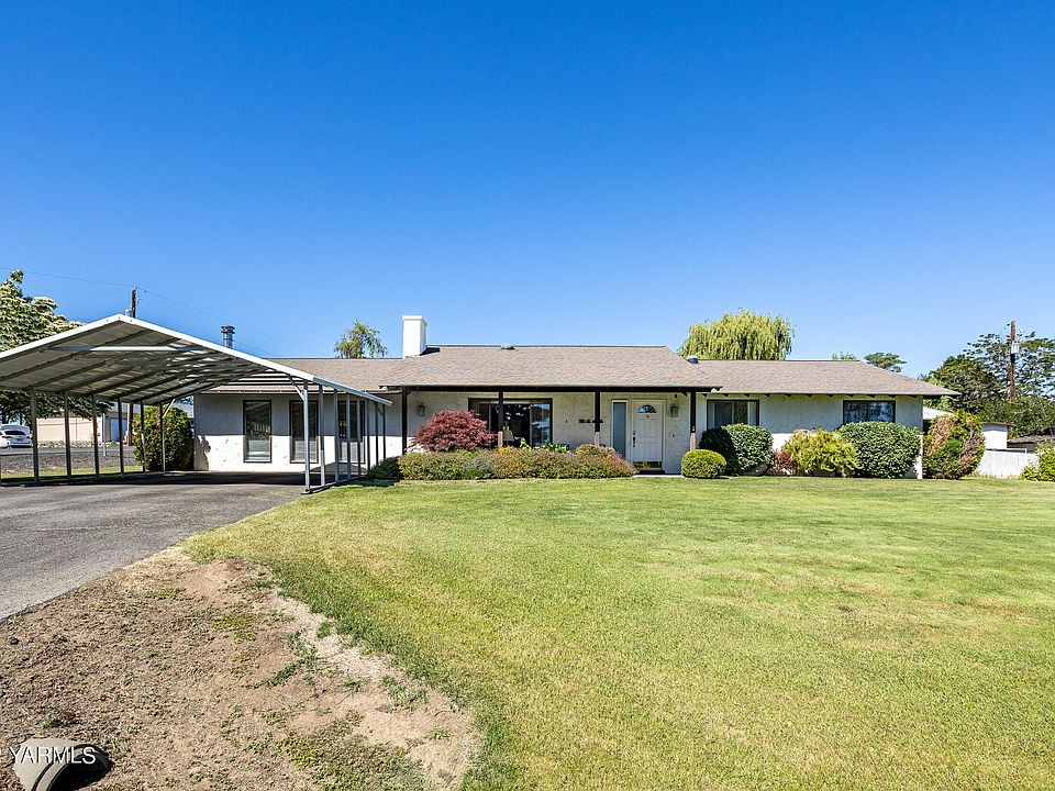 Large corner lot with one level home and a view! This one owner home has so much to offer. 4 BR/2 BA and step down living room with fireplace. Garage was converted to family room and extra bedroom. Would be great for a mother-in-law or teenagers! More storage than you will know what to do with. Fenced yard with large storage building. Divided into rooms but perfect shop, man cave or craft room. A separate storage shed for all of your lawn needs.