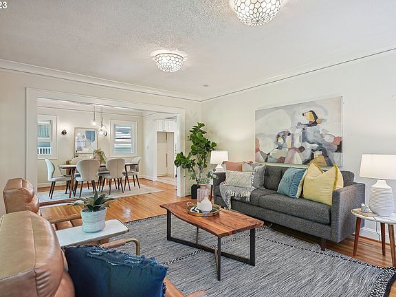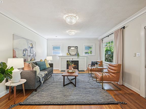 Longing for Ladd's Addition? Here you go! A classic Portland bungalow oozing original charm and modern potential. Curb appeal abounds thanks to the inviting covered porch on a tree lined street. Walk into an open living and dining room that connects easily to the generous kitchen and sweet breakfast nook that flows out into a fully fenced, low maintenance backyard. Bring all your patio furniture to this one and create an outside oasis on the multiple patios. The flexible floor plan includes a coveted main floor primary bedroom and full bathroom, two bedrooms upstairs with an additional space ideal for an office, nursery, dressing room or future bathroom. The finished basement includes a full bathroom, laundry, storage and flex spaces that could be a family/media room, fourth bedroom or office. Options are endless! A rare two car garage with alley access and a rolling gate make for even more creative options. Conveniently located near parks, schools and all the coffee and eateries Hawthorne and Division have to offer. Live the quintessential Portland dream here in the heart of SE! [Home Energy Score = 2. HES Report at https://rpt.greenbuildingregistry.com/hes/OR10219389]