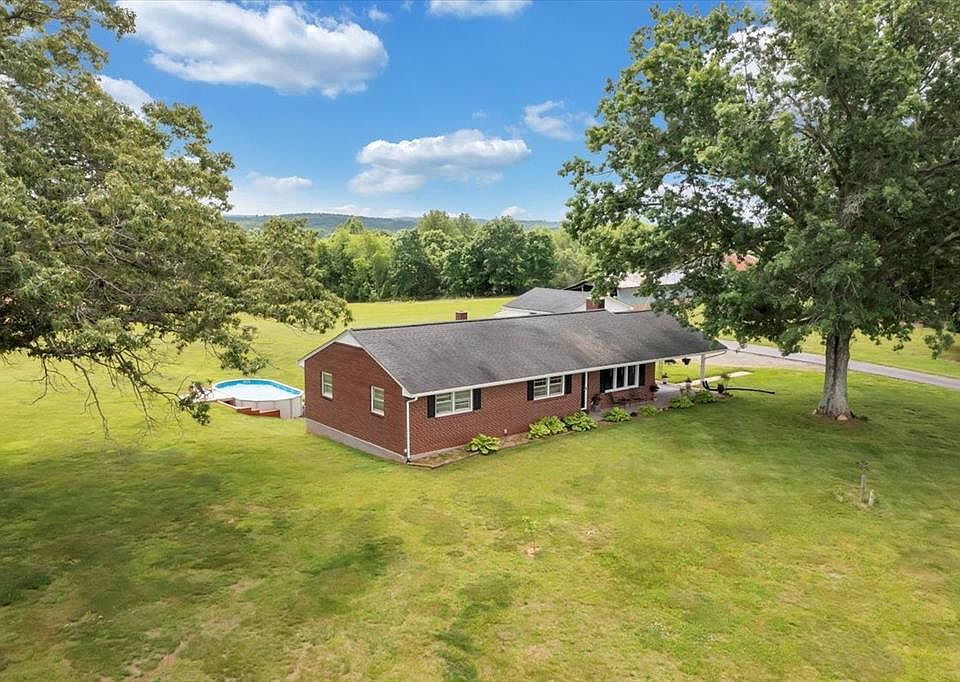 In the country with 3 acres and just 20 minutes from Smith Mountain Lake! Perfect sized 3 BR, 1 BA, brick home with a full basement, above ground pool, and several outbuildings including a double detached garage. Relax & entertain on the covered patio and enjoy the day! Call for an appointment today.