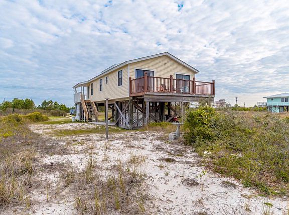 Ready for the SALT LIFE? Enjoy wide open GULF & BAY VIEWS from DOUBLE PORCHES of this charming fisherman's cottage on over half acre LOT! WALK to the beach and spend the day lounging on the powder white sand, and just a stone's throw to the bay where you can BOAT all day! QUAINT and FUN coastal cottage offering front covered porch with direct bay views and back porch with WIDE open gulf views. Open and bright with lots of LIGHT and unique touches including shiplap in living area and widow's peak. UPDATED and ready to go including wood floors, new cabinets, hvac, fresh paint, and MORE! Master bedroom and guest bedroom spill onto back deck with GULF VIEWS. Catch amazing SUNSETS & SUNRISES from your DOUBLE PORCHES! Cute deck area under the house for afternoons in the shade! Yes, live the SALT LIFE on a budget. Comes fully furnished and is a great value at $269,000! HUGE LOT for expansion or plenty of rooms to park your boat, RV, OR add a POOL! NO HOA fees and LOW COST BEACH LIVING! Hurry!