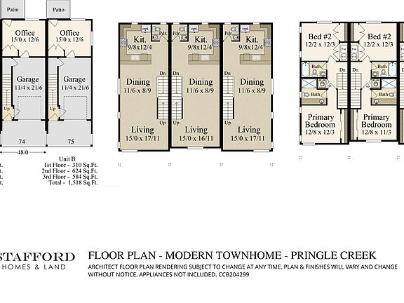 BOM - Buyer could not sell their home. Desirable end unit! New townhomes built by Stafford Homes & Land. This home offers a space for an office or 3rd bedroom with an open floor plan and modern finishes throughout. The kitchen features stunning cabinetry, rich slab quartz countertops, and SS appliances. Covered front porch. Rear patio. One of selling members is related to an OR Real Estate Licensee. Home is complete. Contact us for additional information on our Preferred Lender.