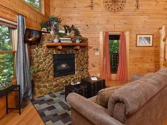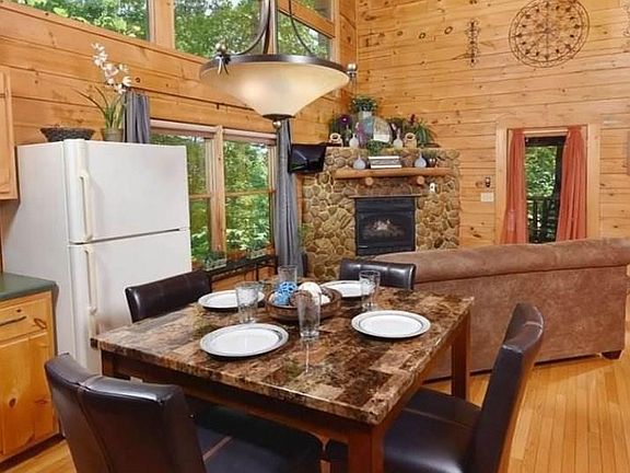 1 bedroom 1 bath cabin with a loft in the mountain resort of Sky Harbor. Fantastic investment property with excellent rental income. All the necessities for a profitable rental cabin. Large covered deck with hot-tub and porch swing. Stone gas log fireplace in the corner of the great room, the bedroom has a whirlpool tub and a door to the porch leading to the private hot tub area. Upstairs is an open loft with games and extra sleeping. Great flowing floorplan with open kitchen and living area and tons of natural light from the large windows.