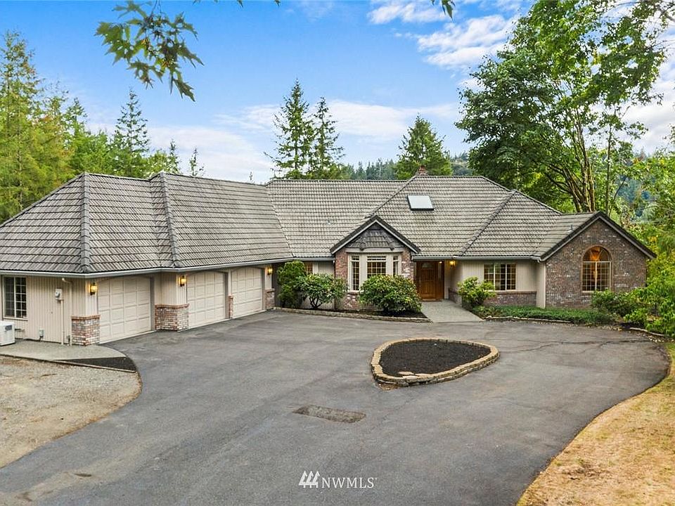 Fall in love with this custom May Valley acreage home. One level living with bonus/4th bedroom w/ bath over garage. Solid, highest-quality construction. Sited on a sun-drenched, private, shy 2-acre lot. Adjacent to Squak Mountain State Park for trails & recreation right outside your door. Accessed off a quiet dead-end lane. A circular drive greets you. Fantastic floor plan with 2 master suites. Beautiful millwork. Oversize chef's kitchen with ample counter & cabinet space. Enjoy lovely territorial views from your wrap-around entertainment deck. Automatic generator. Tile roof. 3 car garage. RV Parking. Sought after Issaquah schools. Easy access to Issaquah shopping, dining, schools, parks, & more. Pre-Inspected. This is the one!
