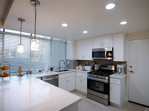 Corner End Unit- Welcome home to this freshly painted remodeled 3bed-2bath townhouse style condo. Experience a feeling of space and light. Open-concept home where you will be greeted by a comfortable living room, upgraded cozy fireplace, and open dinning room with vaulted ceiling. The home has been upgraded with newer flooring. Also, recessed lighting in the bright remodeled kitchen, with new back splash, beautiful counters, newer dishwasher, stainless steel stove, built-in microwave, and a spacious pantry. Convenient inside laundry with cabinet storage as well as upgraded bathrooms. One bedroom downstairs and two bedrooms upstairs all with spacious closets, and ceiling fans. Patio is beautifully bricked and ready for entertaining.