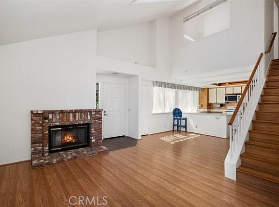 Lovely Whispering Hills townhome, situated atop the highly sought after Greenridge subdivision. This 2 story home features a fabulous end unit location with Southeast exposure offering tons of natural light, along with greenbelt and hills views. As you enter, there is a formal living room with a fireplace and high vaulted ceiling. The kitchen has a built-in microwave, gas cook top & stove, dishwasher and a large storage area which could be a pantry. There is a nice sized primary bedroom on the main level, along with a bathroom with a shower. The other 2 bedrooms are located upstairs and share the 2nd bathroom,(Jack & Jill style), with double sinks, tile floor and a full sized bathtub. Bonus features include; all new interior paint, laminate flooring throughout the home, smooth ceilings, high ceilings in the upstairs bedrooms, additional storage closet under the stairs, 3rd bedroom loft style cut-out overlooking the living room, air conditioning and a private rear patio with newer vinyl fencing. The 2 car attached garage also has direct access inside the home. The community is tucked away in the tranquil hills of Lake Forest and is surrounded by biking, hiking and horse trails, several parks, including a dog park, excellent local schools and easy freeway access in all directions.