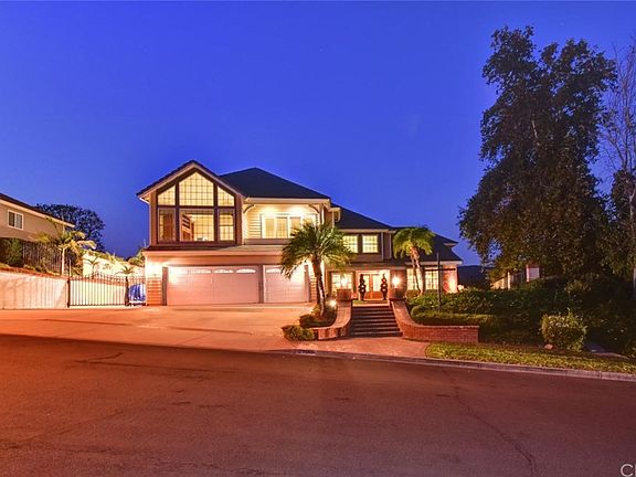 Welcome home to your own Tropical Paradise! You will enjoy entertaining in your private backyard high on a hill above San Antonio Park. You will enjoy the City Lights and Canyon Views from every room of the house and while relaxing in your infinity edge rock pool with, pebble tech, beach entry, spa, slide, grotto and waterfalls. You will fall in love with this home once you see the amazing great room with custom rock fireplace, large gourmet chefs kitchen with large island and walk in pantry make this home perfect for entertaining. This home has 4 bedrooms and 6 bathrooms, master bedroom and two of the secondary bedrooms have en-suite bathrooms, there is also a bathroom with direct access to the backyard which makes it perfect those pool parties. This home has many upgrades which include travertine floors, crown moldings, dual pane vinyl windows, updated bathrooms, newer dual a/c systems and newer dual furnaces and tankless water heater. There is a pull down ladder from the attic for extra storage as well as an extra large 3 car garage. You will fall in love with this executive home located on a quiet culdesac and the fact that it is zoned for Yorba Linda High School.