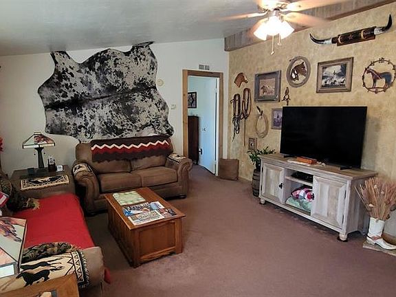This amazing unique property serves as a Hobby Farm. The beautiful home features 3 bedrooms and 2 bathrooms. The custom painted walls are beautiful. The home has a large front covered deck that spans the entire length of the home as well as a more private covered deck in the back. The property is fully fenced with a custom pipe and chain link fencing for pets and livestock and aesthetically, it is amazing the way it frames the property. There are 4 large semi-covered corrals for livestock with heated waterers, individual feeders and are lighted. The hay barn/tack room also has electricity and a concrete floor. There is a round pen for training/exercising horses. There is a dog kennel as well as a chicken coop that is fully enclosed. One of the main features is the large work shop that can also serve as a garage. It is fully heated with a wood stove and comes with an air compressor as well as a commercial vehicle hoist. There are 2 separate rooms on the side as well. The property has 1 acre of irrigated land with risers (sprinklers) on a timer. The lawn has underground sprinklers on a timer also. There are raised garden beds, fruit trees and the landscaping is well groomed and maintained. The pride of ownership stands out in this great property. Schedule your showing today!