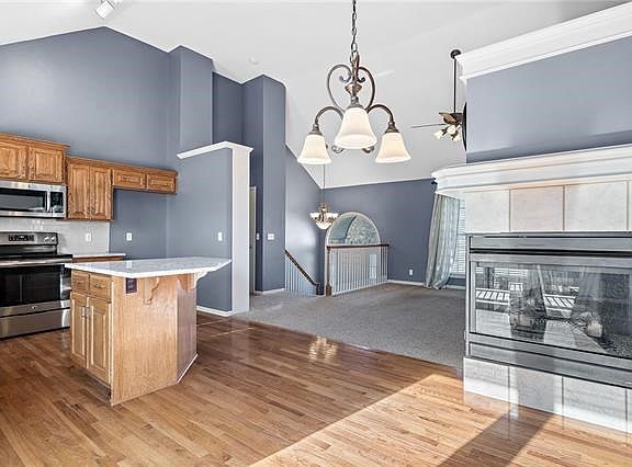 Newly Painted, Custom Built expanded split entry plan! Open and bright and perfect for entertaining. Dramatic room with soaring ceiling and see through fireplace. New Kitchen granite counters, Island and tile backsplash. Kitchen has lots of storage, Stainless Steel Appliances and Wood Flooring. New Stair carpet and bathroom flooring. Master bedroom/bath with 2 closets, dual vanities, Jacuzzi tub and Walk In Shower with double Shower Heads! Awesome walkout lower level with Fireplace, laundry room and half bath. Expanded side entry 2.5 car garage. Fenced large yard, New Deck, 2 Year old Roof and Newer HVAC. Great active HOA with neighborhood pool and park! 2022-01-15