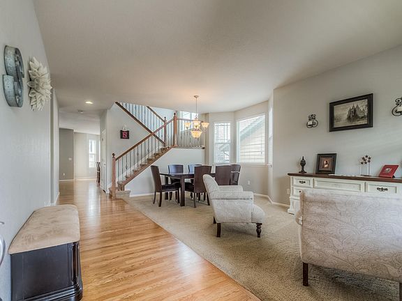 This beautifully maintained Ryland Stockbridge model has everything you are hoping for in a home and features three beds up plus a large loft and a main floor bedroom with adjacent 3/4 bath! Hardwood floors at entry into eating space and kitchen that features cherry cabinets with 42" uppers, island and granite countertops. Stainless steel appliance include convection double ovens, gas cooktop, dishwasher and microwave. Family room has gas fireplace and surround sound prewire, the main floor is complete with formal living and dining areas as well. The master suite boasts of a five piece bath and good sized walk in closet. Bedrooms 2 and 3 share a jack and jill bath with dual sinks and custom storage. The large loft affords additional living space with custom shelving and the laundry room is conveniently located upstairs, large 3 car garage, pet free, large new patio, all located on a quiet dead end street, close to parks and recreation, shopping, and walking distance to elementary. Call today!