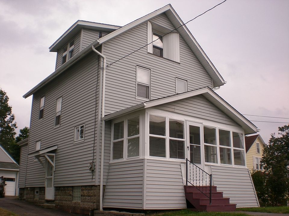 Vinyl sided 2.5 story home - remodeled. Enclosed front porch. The living room and dining room has beautiful woodwork with built in pillars between the 2 rooms, box window in the dining room. The oak floors were just refinished. The kitchen is quite lovely with all new white cabinets, new counter tops, tiled floors. It is fully applianced and a slider that leads to deck and backyard. Bathroom upstairs has been remodeled with newer tub surround, cabinet and sink. All rooms have new carpet. Walk up to 3rd floor for the bonus room. This room has also been newly painted and carpet. Great 4th bedroom or bonus room. Rudd furnace installed in 2015. Electric and plumbing with updates too. Perfect condition to just move in!!!