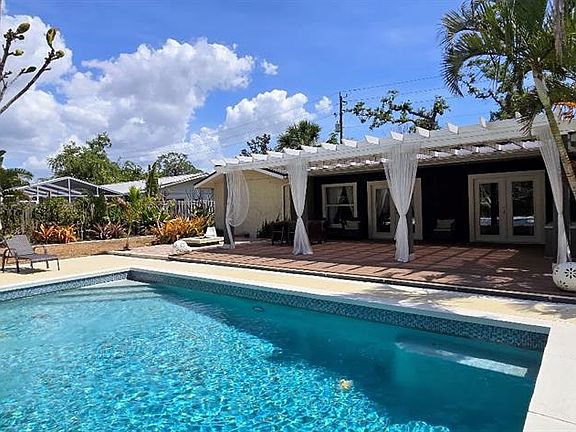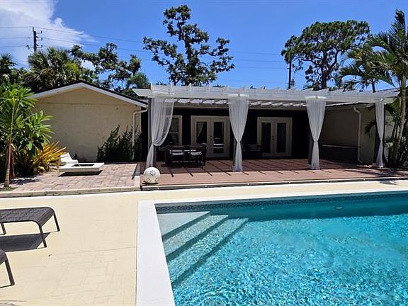 Location, location, location! This property is conveniently positioned on cul-de-sac, close to Tamiami Trail (just East of US 41), near Siesta Key and Lido Key Beaches, downtown, shopping, an exceptional dining options, and in A-rated school districts. Unique family home, featuring wide paved driveway, 1 car garage, private, fenced backyard with open pool, seating arrangement under the pergola and firepit to enjoy during cold nights. Boaters be aware! Extra wide fence gate leads to a parking space for a boat or trailer on the left side of the house behind the fence. 3 bedrooms with a split floor plan and 2 bathrooms offer plenty of storage space, travertine and wood floors throughout, built ins, 2 walk in closets, kitchen with a breakfast bar, pantry closet, reverse osmosis water, and granite counters. Living room and master bedroom French doors will lead you to the spacious pool area with inviting space under the pergola. Master Bath features jet tub and separate shower. This house was remodeled and very tastefully decorated not a long time ago. Furniture and decorations are optional; it can come fully furnished and stocked with all you need or it can be removed! No HOA! 6+ month rental is preferred, but the owner would consider month to month and seasonal, too. Please inquire about monthly and seasonal rental rates. $ 150 application fee for long term. Long term tenant is responsible for all utilities.