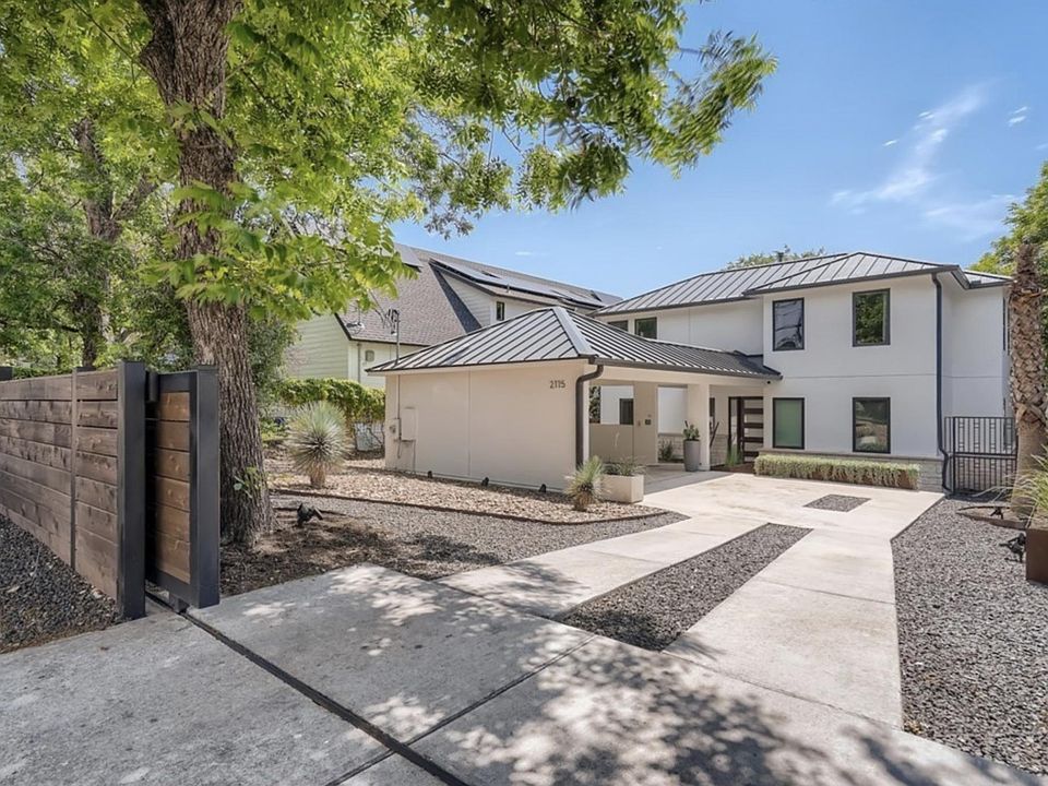 Modern 4-bedroom gated oasis located just one street over from South Congress within walking distance to Austin's finest restaurants, live music venues, shops, and attractions. Walking distance to everything. Bright and open floor plan with two large living areas for entertaining and lounging. The huge gourmet kitchen seats 12 with a waterfall island that can easily seat 3-4 additional guests. Oversized kitchen sink, stainless steel appliances, and quartz countertops. Stepping into the backyard you are greeted by a soothing garden wall and a contemporary deck beautifully designed for entertaining. Down the steps of the deck is a zen garden area with a hot tub that seats 4. Around the corner from walking trails and Big Stacy Public Pool. Covered parking for two vehicles with gated driveway parking for two additional cars.