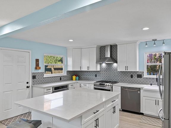 This adorable 3 bedroom home is loaded with charm! Located on a quiet cul-de-sac but has easy freeway access and close to all amenities. The home features a beautiful recently remodeled kitchen with quartz countertops, a large island and gas range. The kitchen opens on to a dining area with glass doors making the room bright and sunny leading on to two outdoor decks. New windows, fresh paint and new floors throughout makes this home move-in ready. The upstairs has three delightful bedrooms and a bath with a large tub. There is also added storage in a good size attic. The large backyard is great for kids to play or entertaining friends and family. Need extra storage? A 10 X 25 foot detached shed in the backyard has room for all your tools and stored items. The added bonus of a wonderful backyard tree house offers an additional play area for the kids or a quiet place to just read and relax. You will love this house!