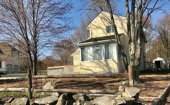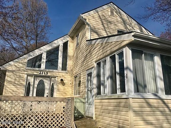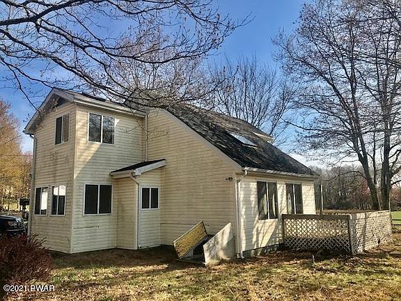 Custom designed home for a buyer with vision, cleaned out and ready for some loving care and being sold AS IS. As said '' You get a lot in a home in Pine Ridge!'' Panoramic views from your fenced-in .73 acre, to an an open field vista, gives that feeling of space to build my weekend! Pocono sports, quiet hiking, biking. skiing, Delaware rafting. And there is always a BB game going on in Pine Ridge, people walking, enjoying. Modern inviting home, with high paned windows, meaning Light, light, light. Cathedral ceilinged Living Room, Open kitchen, bedroom, full bath, and two end bonus rooms, one a sunroom or dining, and at the back entrance, your mudroom, an office, or study area with a view! Upstairs, 2 BR, full bath, including the spacious Master and ensuite Bathroom