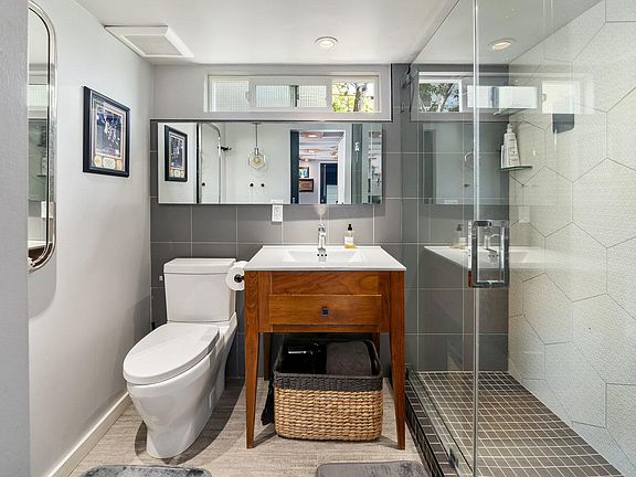 AVAILABLE 8/1. Luxury Studio w/ Hot Tub + separate workshop/office walkable to Downtown SLO 2115 Cypress Street, San Luis Obispo. Fully furnished 1 bedroom / 1 bathroom / plus detached office/workshop. Awesome central location. Walking distance to downtown SLO, the railroad station, parks, hiking, breweries, and many restaurants. 5 min drive to Cal Poly. 12 min to Avila. 14 min to Pismo. Wide, quiet street, with plenty of parking. Studio with loft features stunning custom features throughout including exposed beam ceiling with custom walnut inset lighting, reclaimed hardwood floors, island with barstool seating, high end Italian cabinetry, travertine counters, stainless steel appliances including gas cooktop, tankless water heater, built-in bar, stackable washer/dryer, new AC/heater, smart tv. Bathroom features custom lighting, mirrors, beautiful vanity tile floors, and two shower heads. Office/workshop features French doors, laminate flooring, built-in desk, 55" TV, tv console, wall cabinet storage, and couch seating. Landscaped with privacy in mind, including the deck with fire pit and hot tub. Fully Furnished Rental. Water included in rent. No pets or smoking.