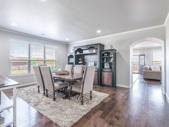 Beautifully updated home with new white lime washed brick on exterior, new roof & gutters, newly painted interior walls & cabinets. The back yard is an entertainers dream with large extended stained concrete patio with rock fire pit. Large flex room that could be formal dining/living/office. Over sized master bedroom with his & her closets. Above ground tornado shelter in garage. All in the resort like neighborhood of Providence Hills. New Bixby West school K-6 open in the fall of 2020.