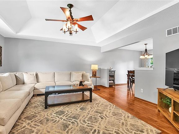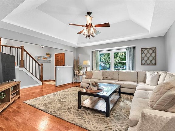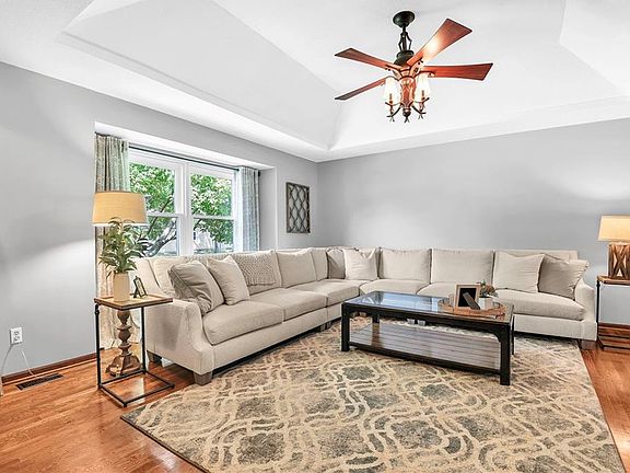 WELCOME TO THIS GORGEOUS SPLIT STYLE HOME! Fresh indoor paint! Beautiful wood floors throughout the main level. Inviting and Spacious Great Room with Vaulted Ceiling Open to Dining Space. Kitchen is sure to please with seamless Corian solid surface counter tops and sink, island, tons of cabinets and stainless steel appliances! Like cooking outside? Convenient access to the backyard deck from the dining room! After a long day, retire to the spacious primary suite with walk-in closet and private bathroom. 2 more bedrooms and full bath on this level. Head downstairs to the family room including fireplace with built-ins! Walk out to the covered patio from the family room to take in the GORGEOUS newer landscaping and CUSTOM BUILT SHED for ALL your storage needs! Half bath on this level includes washer and dryer hook ups. EPOXY FLOOR IN GARAGE! Don't miss the Rec Room that is accessible from the garage. Nothing left to here but MOVE IN! Great location close to dining, shopping and I-35!