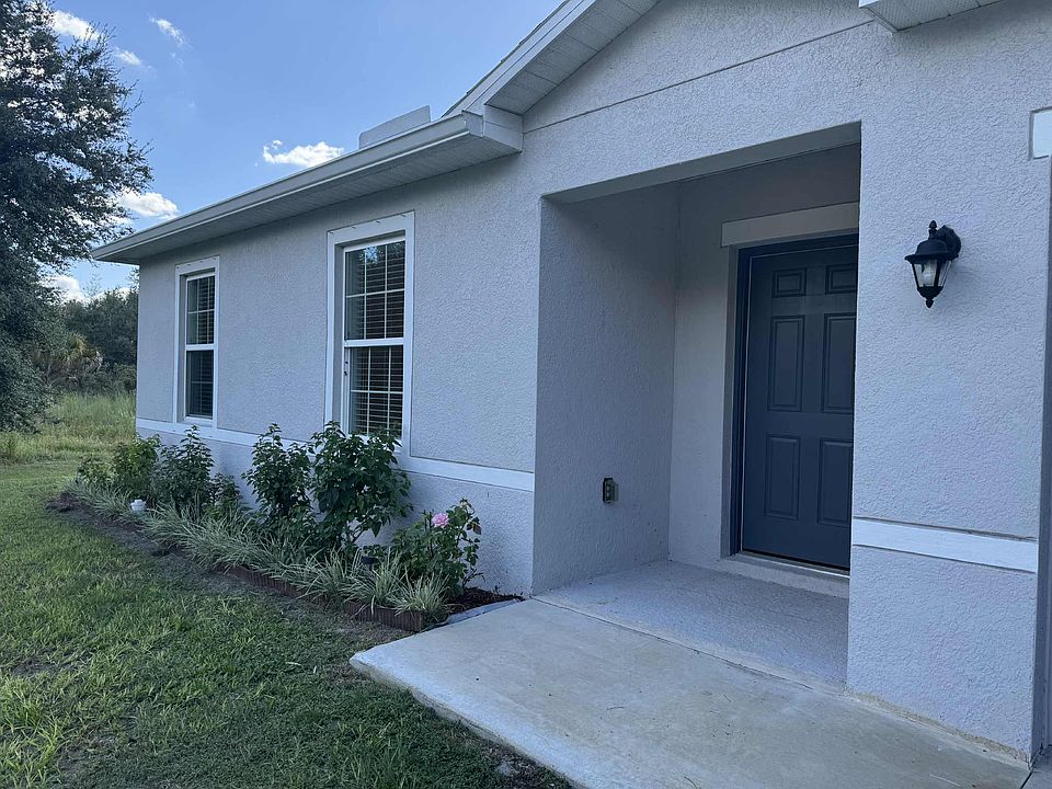 This beautiful newer home has 1867 sq ft and was completed in 2023. It has 4 bedrooms with 2 bathrooms, and a two-car garage. There are ceramic tile floors throughout the living areas and brand new LVP in bedrooms. The whole interior of house has a fresh coat of paint. Enjoy an open kitchen with modern countertops, stainless steel appliances, and an island with a sink and dishwasher that comfortably fits 3 stools. Lounge in a spacious living room for family & friends gatherings; with additional space for a desk! Split floor plan. Huge master suite on one side of house! Another 3 bedrooms, full guest bathroom with double sinks, and laundry room on other side. All bedrooms and living room have fans!