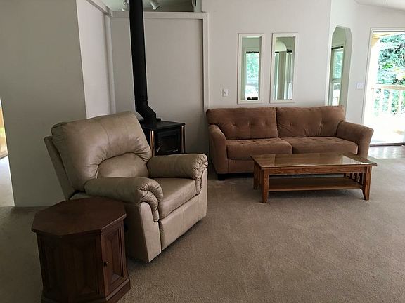 Welcome to this prime location in a serene setting! 5 acres of wooded property await you. Bring your boats, RV and toys- there is a large 2-car Garage and a pole barn for storage. A public park and boat launch are down the road, as well as ample access to trails. The home boasts a large Living Room and two large Bedrooms with tons of storage space. There are vaulted ceilings throughout the home and skylights bring in plenty of natural light.